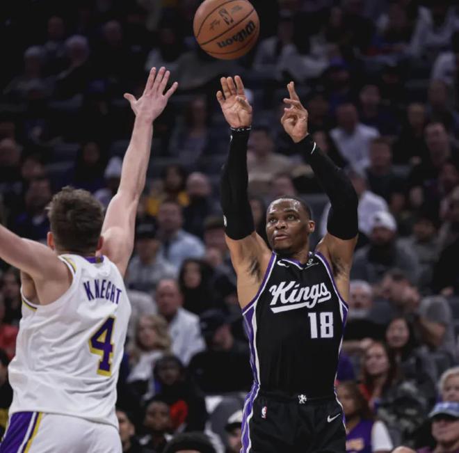 國王在威少爺?shù)膸ьI下一路猛攻,差點就把湖人啃下來了。