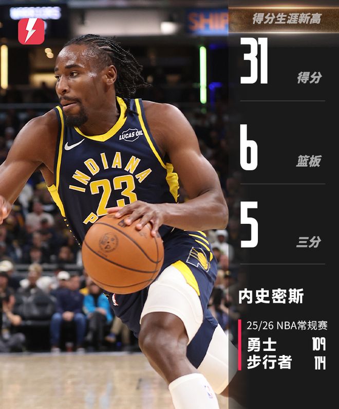 內(nèi)史密斯19投10中拿到了31分6個籃板,得分同樣是職業(yè)生涯新高。