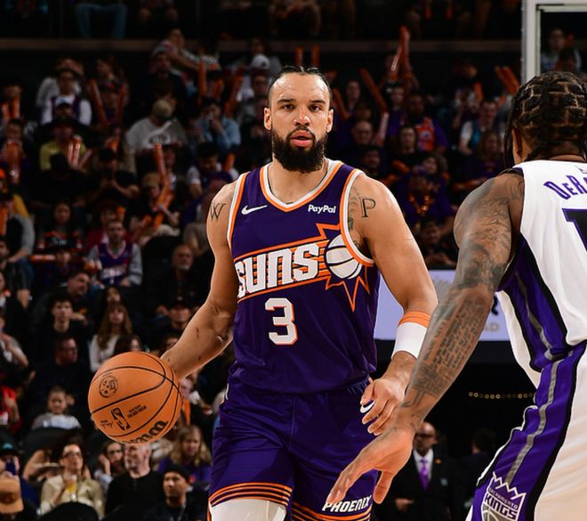 太陽(yáng)主場(chǎng)迎戰(zhàn)國(guó)王,太陽(yáng)少了杰倫格林、阿倫,國(guó)王少了小薩、拉文、蒙克,上半場(chǎng)比賽國(guó)王還能咬住比分,下半場(chǎng)比賽太陽(yáng)優(yōu)勢(shì)明顯,分差迅速擴(kuò)大,最終太陽(yáng)大勝27分。布克21中13得到33分2板5助,狄龍14中8得到18分2板,國(guó)王方面穆雷17中9得到23分9板2助,威少12中6得到17分9板6助。